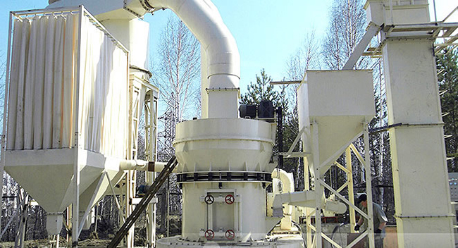 破碎后的石灰石小塊物料經(jīng)提升機送至料倉,再經(jīng)振動給料機將其均勻定量送到磨粉機中進行研磨,研磨完成后滿足產(chǎn)品粒度的成品即可使用,若不達標再返回至磨粉機。